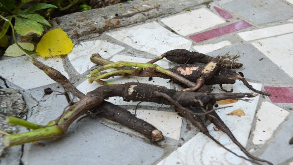 - Coupez toutes les racines, puis traitez les morceaux avec du charbon vert brillant ou broyé.