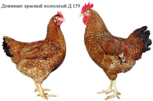Pour distinguer les représentants de cette variété, la couleur obtenue en croisant des individus rayés de nuances rouges de la variété permet Rhode Island de Sussex... Pendant la période de ponte active, les hybrides de la race dominante D159 sont capables de produire plus de 300 œufs.