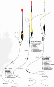Une laisse jusqu'à 30 cm de long est constituée d'un simple fil monofilament d'une section de 0,02 mm plus fine que la ligne principale. Pour la pêche avec des buses à légumes et de gros vers de fumier, les hameçons n ° 8-10 sont attachés à la laisse, lorsque vous utilisez des vers de vase, des asticots et des shitik, des hameçons plus petits et plus minces n ° 12-14 sont utilisés.