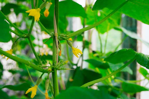 Avoir variétés communes ou hybrides de concombresà l'aisselle des feuilles, en règle générale, 1 à 2 inflorescences se forment.