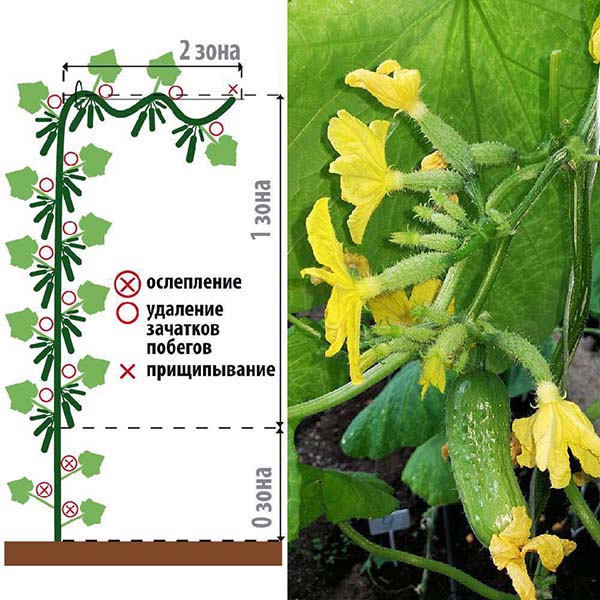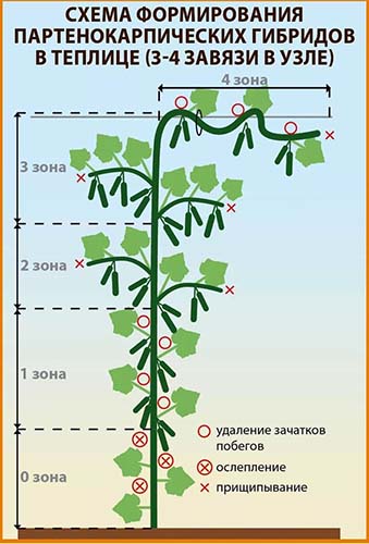 Les concombres avec des ovaires groupés doivent être façonnés, ce qui peut être fait selon le schéma suivant: