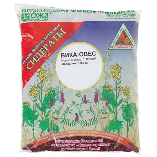 - Siderata après concombres - vesce 25%, pois 25%, moutarde 20%, radis oléagineux 15%, colza 15% (pour améliorer la structure du sol, éliminer les ravageurs du sol, supprimer les agents pathogènes nocifs, réduire la croissance des mauvaises herbes et accumuler les nutriments de la culture).
