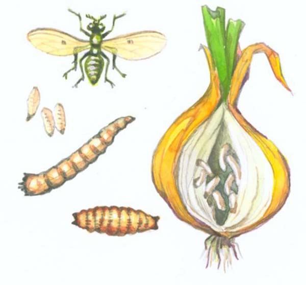 - opportun traitement (pulvérisation) oignons avec des insecticides chimiques pour le direct la destruction de la mouche de l'oignon.