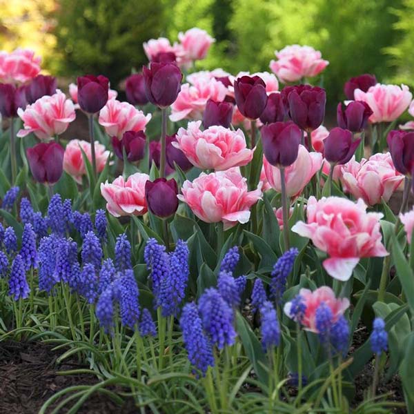 Remarque! Si vous voulez faire un parterre de fleurs à bulbes, vous devez planter au premier plan des plantes à petites bulbes (en règle générale, elles ne sont pas grandes), par exemple, des freesia ou des muscari, et au second - des plantes à gros bulbes de plus grande hauteur.