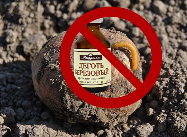 Un moyen de cette prévention est traitement des tubercules de pomme de terre avec du goudron de bouleau. Avant la plantation, les tubercules doivent être brièvement plongés dans une solution de goudron de bouleau (recette de cuisson: 1 cuillère à soupe du produit pour 1 litre d'eau), puis, comme protection supplémentaire, évacuer les rainures de plantation (ou fosses) avec une solution moins forte (dissoudre environ 1 cuillère à soupe de goudron dans Arrosoir de 5 à 6 litres).