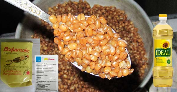 Faites bouillir le blé pendant 15 minutes pour qu'il ait le temps de bouillir et qu'il ne puisse pas monter. Ensuite, refroidissez et ajoutez l'un des produits chimiques des vers fil de fer à la bouillie, par exemple "Régent" ou "Vofatox", ou tout autre insecticide (dont certains conviennent et pour lutter contre le doryphore de la pomme de terre) «Iskra», «Corado», «Confidor», «Biotlin», «Commander», «Tanrek», «Tabu»... Laissez infuser pendant environ 24 heures et à la fin de la journée, ajoutez de l'huile de tournesol non raffinée parfumée supplémentaire. Ensuite, dispersez l'appât sur la zone et déterrez. Cet appât agira à la fois sur le taupin et ours dans les 2-3 mois.