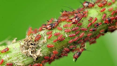 - Puceron - affecte les jeunes feuillages et pousses, se nourrissant de leur jus. Il se multiplie rapidement et forme de nombreuses colonies. En l'absence de procédures de protection, il peut causer de graves dommages à la culture et ralentir considérablement son développement.