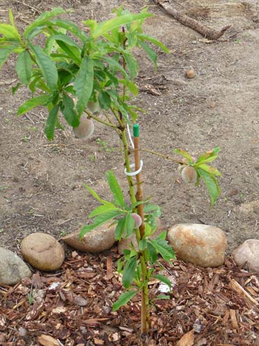 Au même stade pour une protection supplémentaire des pêches contre les insectes ravageurs Vous pouvez mettre des fûts spécial arbres ceintures de piégeage, construisez et accrochez-vous aux branches pièges à colle, maisons à phéromones.