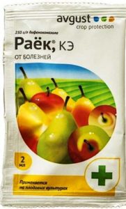 - Raek (fongicide systémique basé difénoconazole, contre la tavelure, la moniliose, la pourriture des fruits, l'oïdium, la coccomycose, la phylostictose - tache brune, clastérosporiose - tache perforée, feuilles bouclées, septorie, anthracnose, tache noire et autres maladies);