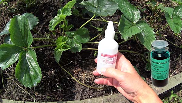 Un remède populaire pour traiter les fraisiers contre les maladies est l'utilisation vert brillantdilué dans l'eau à raison de 4 à 5 gouttes pour 1 litre d'eau. Selon certains résidents d'été, vert brillantEst un excellent antiseptique qui aide dans la lutte contre la moisissure grise, l'oïdium et d'autres maladies.