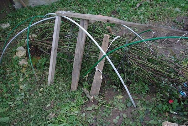 Conseil! Avant de couvrir, si les feuilles elles-mêmes ne sont pas tombées (et que les roses elles-mêmes les perdent rarement), elles sont nécessairesarrachez doucement avec vos mains... Le fait est que sous l'abri il y a généralement une humidité élevée, à cause de laquelle les feuilles commencent à pourrir et à pourrir progressivement, et derrière elles, le buisson lui-même peut pourrir.