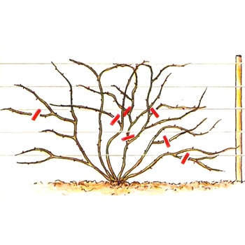 - Facile - n'est pas fait trop souvent pour que les buissons ne s'étirent pas. La pousse est laissée avec 8-12 bourgeons.