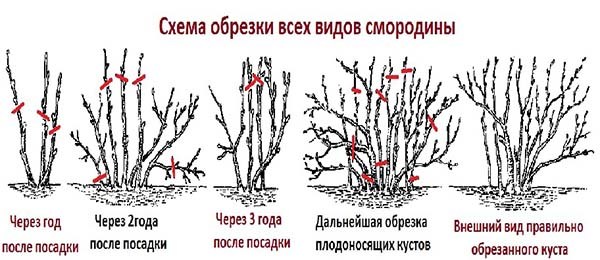 Une autre différence importante dans la taille est que dans les cassis, les sommets ne doivent pas être trop raccourcis, sinon vous vous retrouverez sans une partie significative de la récolte, alors que vous pouvez avoir du rouge et du blanc.