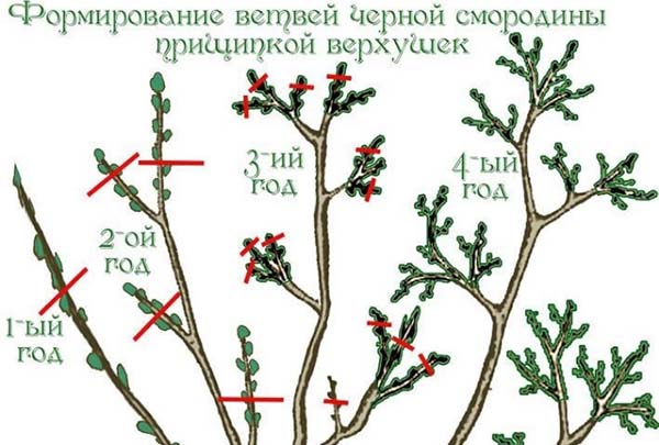 Une autre différence importante dans la taille est que dans les cassis, les sommets ne doivent pas être trop raccourcis, sinon vous vous retrouverez sans une partie significative de la récolte, alors que en rouge et blanc, c'est tout à fait acceptable.