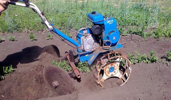 Le tracteur à conducteur marchant simplifiera grandement votre travail au chalet d'été, mais il convient de considérer le fait que son utilisation n'est possible que s'il y a la même distance entre les rangées de pommes de terre, sinon vous allez simplement endommager et blesser tous les tubercules.