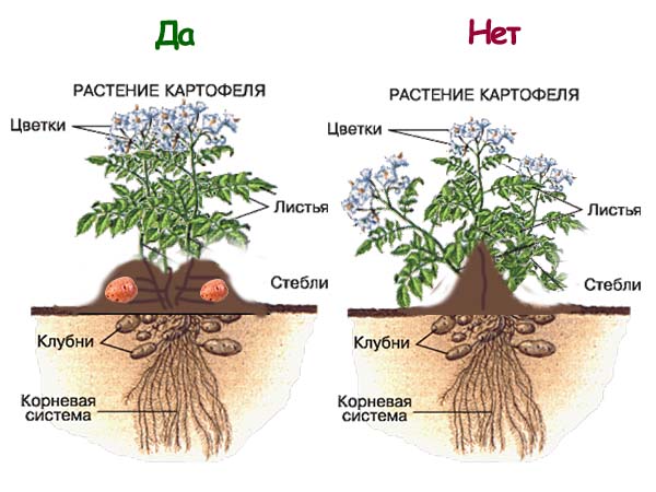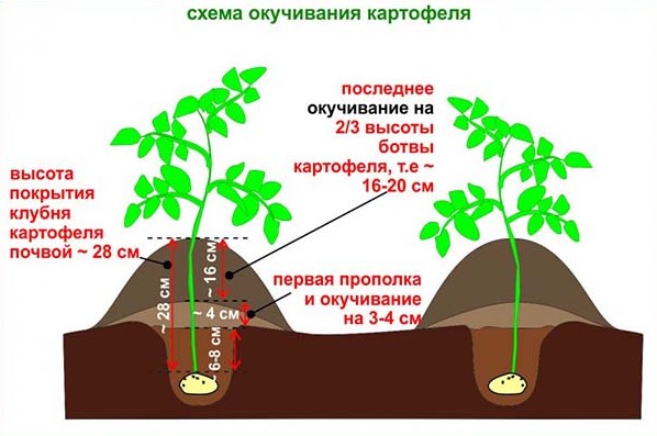 Les pommes de terre, comme aucun autre légume, doivent être butinées. Même si cette technique agrotechnique est assez laborieuse (surtout dans le cas d'une technique manuelle) et prend beaucoup de temps, l'effet justifie largement les efforts fournis.