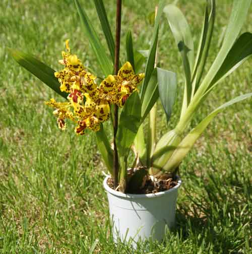 À cet effet, un récipient est installé près du pot, qui est rempli d'eau. Vous pouvez également vaporiser l'air quotidiennement près du feuillage des orchidées. Afin d'éviter l'apparition de taches jaunes sur les feuilles de cambria, il est nécessaire de s'assurer qu'aucune eau ne pénètre sur elles pendant la pulvérisation. |