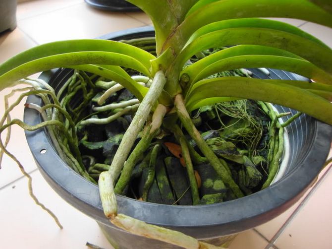 - Passé ce délai, la plante est placée dans son pot permanent, qui devrait avoir de nombreux trous. Une option idéale pour la réanimation de l'orchidée de Wanda sans racines sera un panier fabriqué à partir de matières premières naturelles de grand tissage.