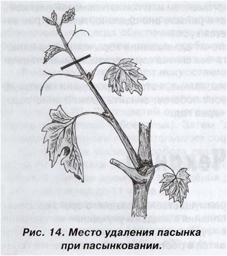 Respectivement, parfois (déjà à partir de la fin du printemps pendant l'été, à mesure que les nouveaux beaux-enfants grandissent), vous devez vous en débarrasser (pincer les raisins), c'est à dire. supprimer stepons - pincer avec les mains (clous) ou couper avec un sécateur.