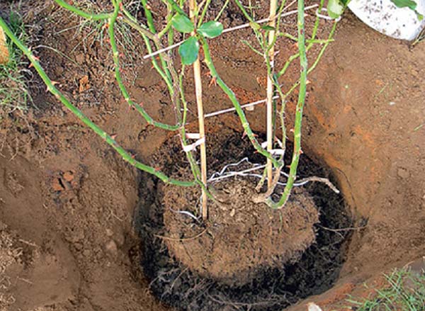- Avant de déterrer les roses, il est recommandé de bien renverser les buissons avec de l'eau afin que la motte de terre tienne bien et ne s'effondre pas lors de la transplantation.