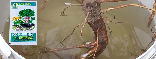 - Si vous décidez de prendre un plant trop gros et qu'il n'est pas possible de l'amener sur votre site avec un morceau de terre, enveloppez les racines avec un chiffon humide sans faute, et avant de planter, maintenez-le dans la solution Kornevin.