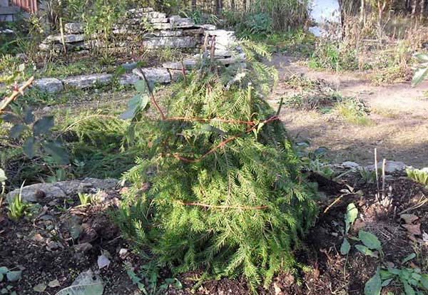 Les pins adultes sont très résistants, ils n'ont donc pas besoin d'abri. Que ne peut-on pas dire sur les jeunes plants, qui pour l'hiver des 2-3 premières années doivent être recouverts de branches d'épinette ou de toile de jute. Un tel abri servira deux objectifs: 1) protection contre le gel et le gel et 2) protection contre les brûlures printanières des aiguilles.