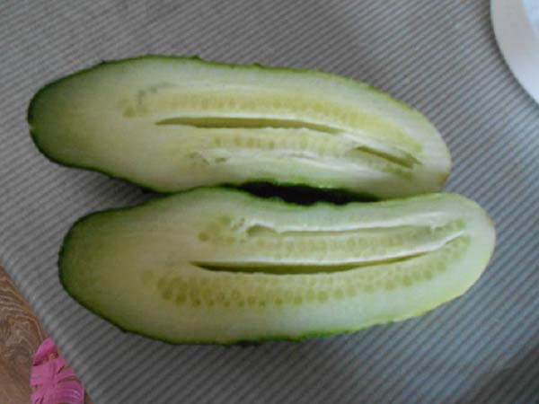 Vous avez planté pour la première fois ou avant cela pendant de nombreuses années, vous avez réussi à cultiver des concombres en utilisant la technologie standard, sans connaître aucun problème: vous semblez avoir suffisamment arrosé, parfois même nourri, mais vous avez soudainement constaté que pas tous, mais beaucoup de fruits de concombre étaient vides à l'intérieur.