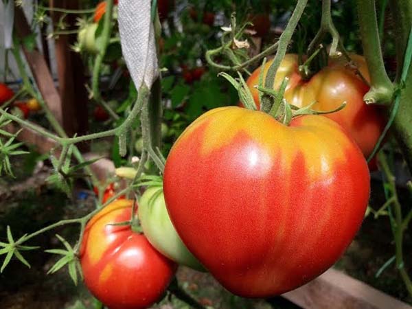 Il se trouve que les tomates mûrissent et deviennent rouges, mais la tige a encore des taches jaunes (les fruits ne mûrissent pas), parfois on dit aussi que des «épaules jaunes» apparaissent.