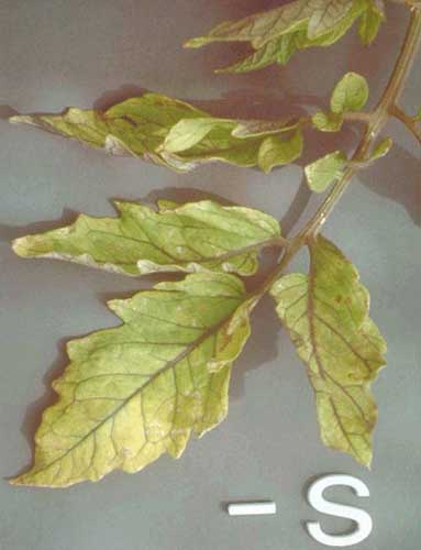 Si, après avoir augmenté la température, la couleur du feuillage et des tiges des plants de tomates n'est pas devenue une nuance normale, le problème est peut-être dans la raison suivante.