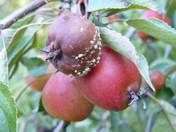 Important! Il est impossible de jeter des pommes pourries sur le tas de compost, le champignon peut y survivre. Il n'est pas sage de les utiliser comme engrais pour le jardin.