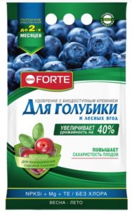 - «Bona Forte» pour les myrtilles et les baies sauvages. Engrais d'action prolongée (à long terme) (il suffit d'appliquer 1 fois par saison).