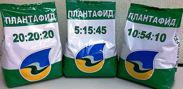 - Plantafid de "Agromaster" (rapidement digestible, contient des micro-éléments sous forme chélatée, idéal pour l'habillage foliaire à différentes périodes de développement de la plante, selon les besoins, à partir du début du printemps, avant la floraison, pendant la période de floraison et après).