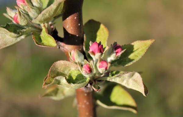Et enfin, le pommier a posé des boutons floraux = prêt pour la prochaine récolte.