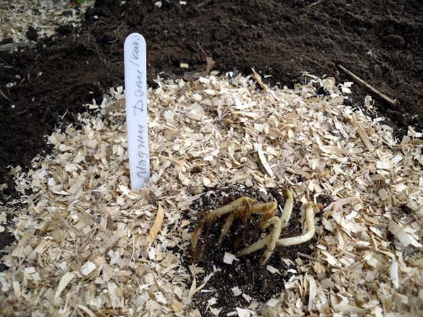 - Remplissez le récipient au 1/3 de terre, faites une petite dépression et placez-y les rhizomes. Puis recouvrez de terre, mais pas complètement. Ne scellez pas!