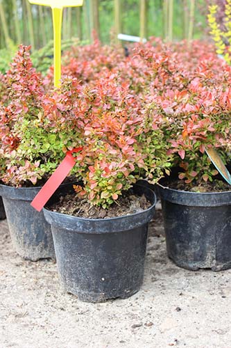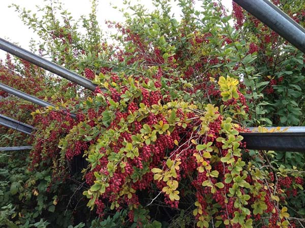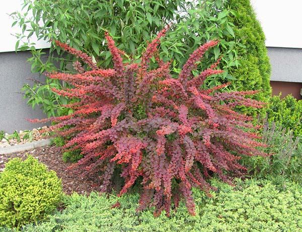 - Épine-vinette Thunberg décorative (les fruits sont petits et non comestibles, peuvent atteindre 1,5 mètre).