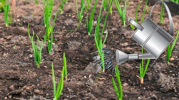 Abondant et fréquent arrosage l'ail de printemps n'est nécessaire qu'au début de sa formation, de sorte qu'il ait, pour ainsi dire, un bon feuillage vert. En d'autres termes, en mai-juin, l'arrosage des parterres d'ail devrait être fréquent. Lorsque la plante commence à former une tête, cela se produit généralement lors de la formation de 5 à 6 feuilles, l'arrosage doit être réduit, plus proche du mois d'août, et complètement arrêté.
