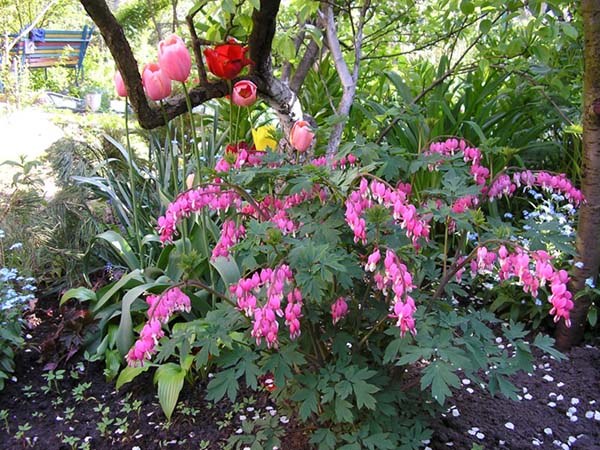 Au fait! De nombreuses personnes plantent le dicentre sous les arbres (y compris dans les cercles du tronc). Mais dans ce cas, au printemps et en été, n'oubliez pas de les arroser plus souvent - il y a toujours moins d'humidité sous les arbres