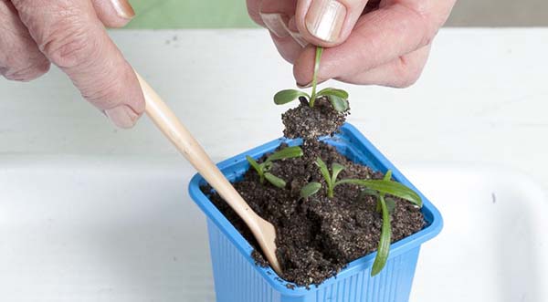 Il est préférable de transplanter les jeunes pousses de fleurs dans des récipients séparés de 9 centimètres de haut et de large.