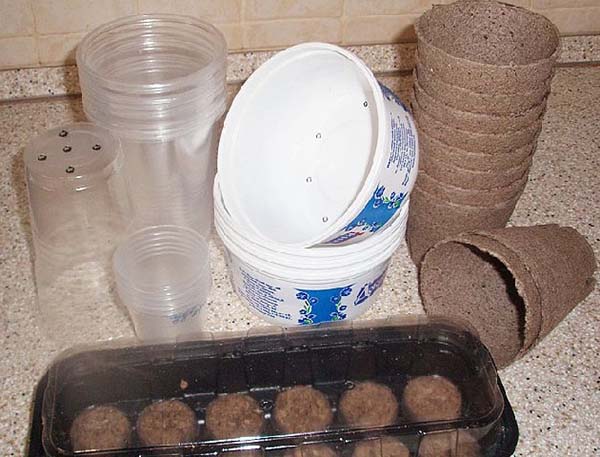 Lorsque vous choisissez un récipient pour la plantation, vous pouvez choisir celui que vous aimez: que ce soit un grand récipient en plastique ou de petits pots. Si vous êtes un homme à tout faire (ou un homme à tout faire), construisez une «maison» temporaire pour vos semis à partir de récipients précédemment utilisés pour le lait ou le kéfir.