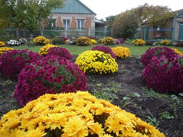 Le chrysanthème vivace de jardin est idéal pour créer des bordures vivantes, c'est-à-dire pour décorer les allées de jardin, ainsi que pour créer de belles compositions autour de la maison.