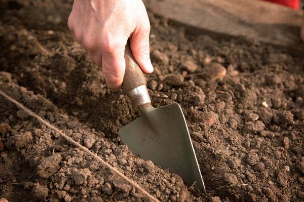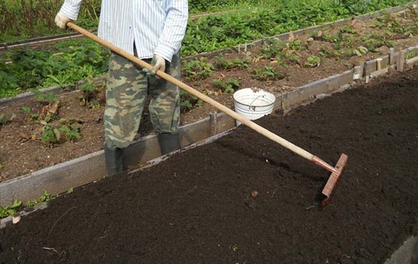Pendant le creusement d'automne ou juste avant la plantation de printemps, il est conseillé d'appliquer des engrais organiques et minéraux dans le sol (encore une fois, pour creuser). Et essayez aussi de débarrasser complètement le jardin des mauvaises herbes et du hangar Fitosporine (pour désinfection et tassement avec un bâton de foin). Ensuite, desserrez, alignez et marquez les rangées.