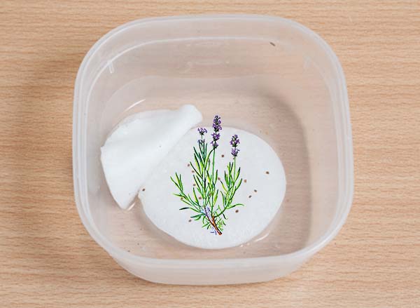 - Mettez 1 coton sur le couvercle et humidifiez-le du vaporisateur.