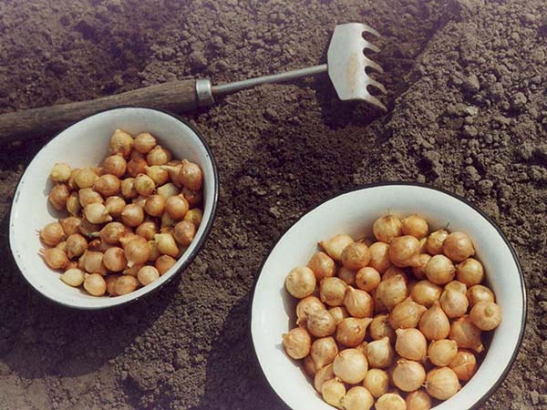Mais habituellement pendant la plantation d'automne, les oignons ne sont ni trempés ni chauffés (de la prise de vue).