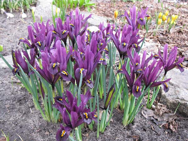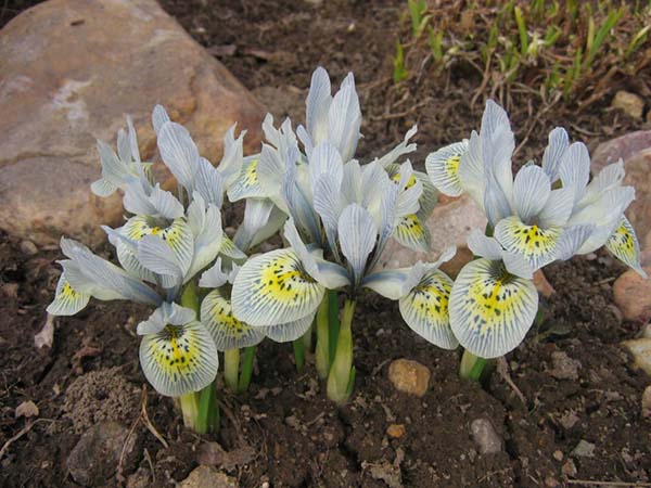 Pour planter des iris bulbeux de printemps, choisissez des endroits près de chez vous ou près des allées de jardin afin qu'ils rencontrent souvent vos yeux pendant leur courte floraison. Ajustement parfait jardin de roches ou jardin rocheux... Il est beau de les planter à côté d'autres bulbeux, fleurissant au début du printemps, par exemple, avec le même crocus, jonquilles, tulipes.