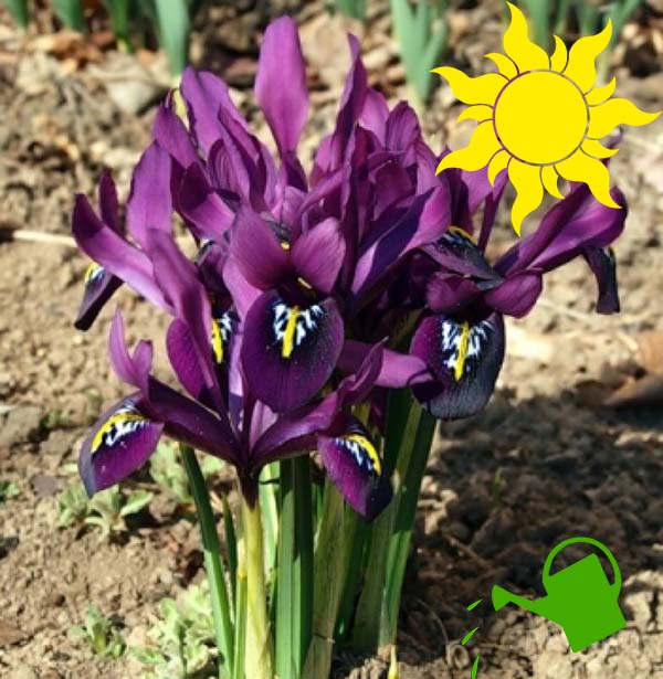 Les iris bulbeux nécessitent un arrosage modéré. Il est particulièrement important de ne pas oublier d'arroser la plante par temps sec (y compris à l'automne après la plantation, s'il n'y a pas de pluie du tout), à savoir pendant la période de leur croissance active, c'est-à-dire pendant la formation des bourgeons et la floraison directe. En fin de floraison, l'arrosage n'est plus nécessaire. Les fleurs ont besoin maintenant période sec du repos.