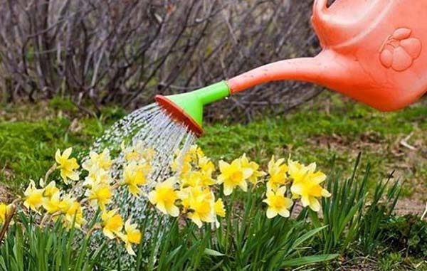 Les narcissiques aiment beaucoup les arrosage, surtout au début du printemps, au début de la croissance et de la formation de masse verte (s'il n'y a pas de pluie), également en bourgeonnement et en floraison, et même après sa fin (c'est à ce moment que le bulbe est rempli de nourriture).