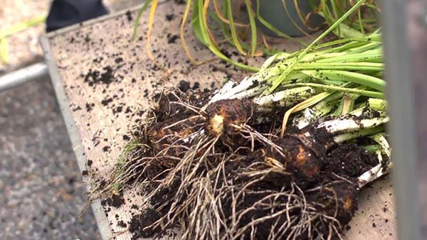 Le principal signal pour creuser est le jaunissement des extrémités des feuilles (le buisson devient léthargique et les feuilles commencent à tomber sur le sol) et leur séchage ultérieur. Cela se produit généralement en moyenne 2 mois après la floraison (vers août). S'il est tard, les fleurs peuvent prendre racine, ce qui sera très facile à endommager lors du creusement.