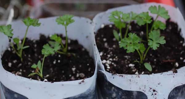 - De verdureobtenir une récolte plus précoce a du sens planter uniquement du persil sur les semis (bien que vous puissiez immédiatement semer dans le sol) et basilic.
