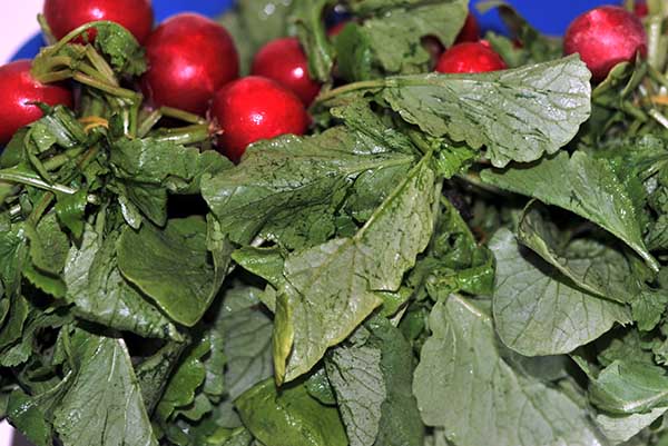 Oui, ce n'est pas une erreur, les radis ont des sommets très savoureux et juteux que vous pouvez manger.