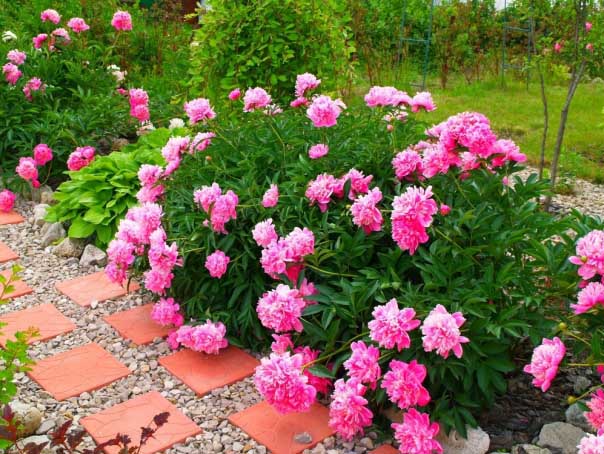 - Plantez magnifiquement les pivoines avec fleurs de lys, phlox, delphiniums, clématite, Iris.